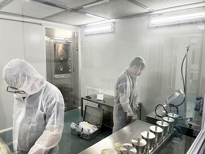 根據(jù)相關(guān)標(biāo)準(zhǔn)要求,4月11日,我公司委托江門市質(zhì)量計量監(jiān)督檢測所對潔凈室進行了年度檢定,檢測內(nèi)容涵蓋沉降菌、懸浮粒子及浮游菌三項關(guān)鍵指標(biāo)。檢定結(jié)果顯示:懸浮粒子檢測中,≥0.5μm的粒子數(shù)量為0粒/m³(標(biāo)準(zhǔn)要求為≤3500粒/m³),≥5μm的粒子數(shù)量也為0粒/m³(標(biāo)準(zhǔn)要求為0粒/m³);浮游菌檢測結(jié)果為0.25cfu/m³(標(biāo)準(zhǔn)要求≤5cfu/m³);沉降菌檢測結(jié)果為0 cfu/30min·Φ90皿(標(biāo)準(zhǔn)要求≤0.2cfu/30min·Φ90皿)。三項關(guān)鍵指標(biāo)的檢測結(jié)果均優(yōu)于國家標(biāo)準(zhǔn),充分證明了百級無菌潔凈室硬件設(shè)施的可靠性和環(huán)境控制的精準(zhǔn)性。